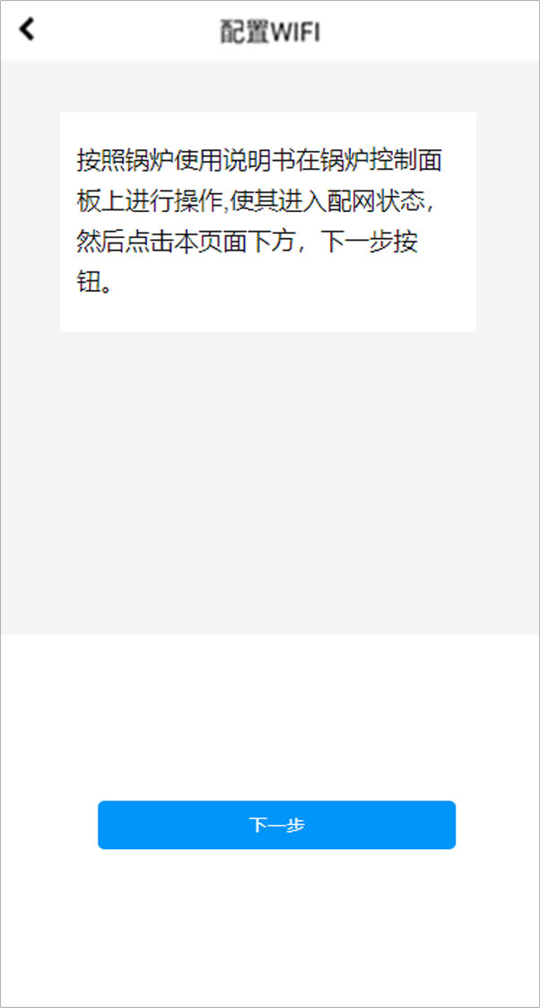 選擇“WIFI配網(wǎng)”后,跳轉“配置WIFI”頁(yè)面;